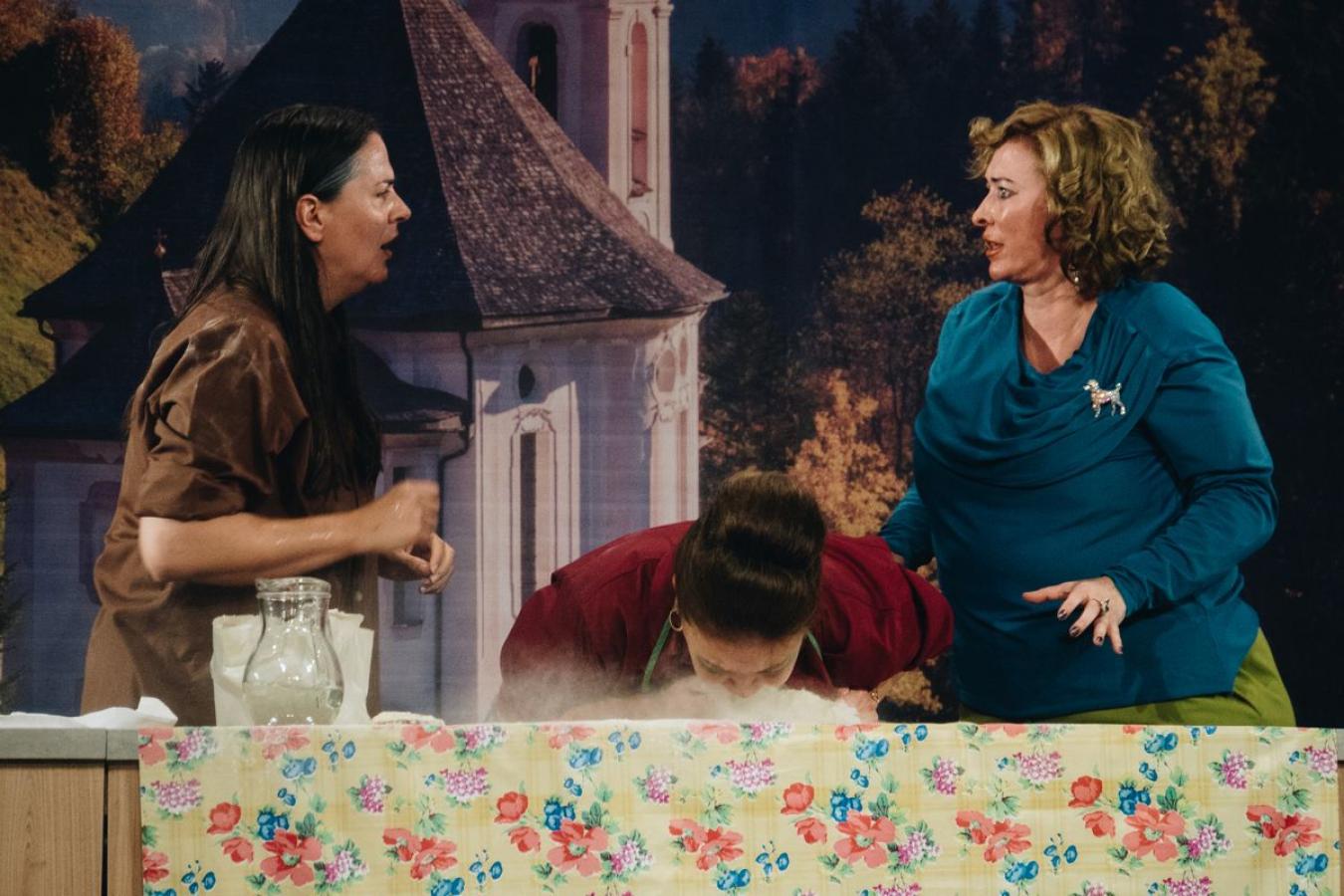 Erna, Greta i Marica su „predsednice“ malih građanskih života, one su antijunakinje, banalne i vulgarne, komične i tragične, ponižene i uplašene od života. Kroz situaciju pripremanja večere, neobavezno brbljajući i ističući sopstvenu lažnu pobožnost, one izlažu svoj preuski pogled na društvo, moral i religiju, a na taj način predstavljaju nepravednu, prepredenu filozofiju palanke.